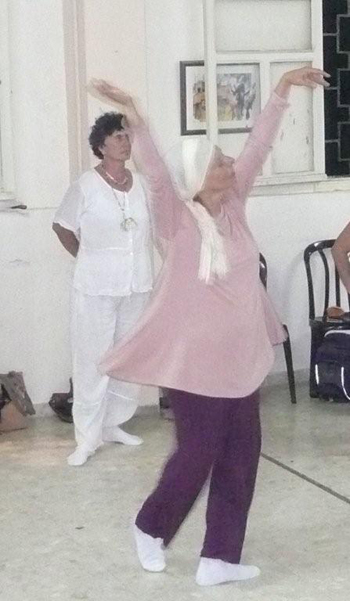 Then Shikha Khadija started with thanking Volunteering for Peace for organizing this event and inviting her to it and for giving her the opportunity to make this event in Palestine. She provided an introduction about the Mevlavi way of Sufism which is using the prayers and thiker as a method of worshiping to God. She started with an introduction of the existence of human being and the uniqueness of God. She provided a detailed information about the mevlavi way (tariqa) of Sufism and spoke about the whirling Dervish way which she use to reach to god. She mentioned that her way of worshiping to god is based on love and Thiker. She also gave live examples of the classes she normally provide around the world in the states, Europe, India, and other countries. to learn more about Shikha Khadija and her work check the following link www.whirling-dervish.org